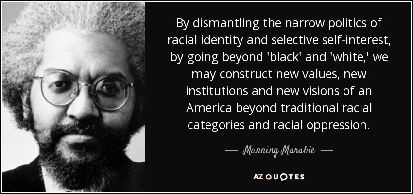 By dismantling the narrow politics of racial identity and selective self-interest, by going beyond 'black' and 'white,' we may construct new values, new institutions and new visions of an America beyond traditional racial categories and racial oppression.
