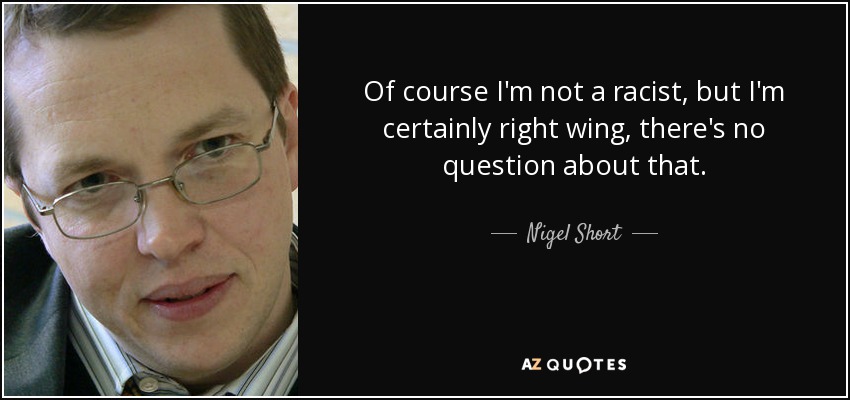 Of course I'm not a racist, but I'm certainly right wing, there's no question about that.