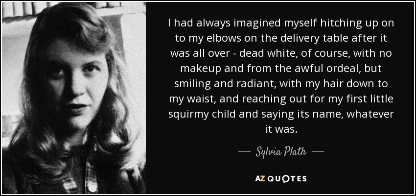 I had always imagined myself hitching up on to my elbows on the delivery table after it was all over - dead white, of course, with no makeup and from the awful ordeal, but smiling and radiant, with my hair down to my waist, and reaching out for my first little squirmy child and saying its name, whatever it was.