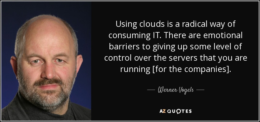 Using clouds is a radical way of consuming IT. There are emotional barriers to giving up some level of control over the servers that you are running [for the companies].