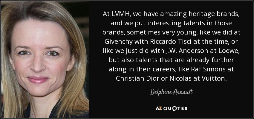 At LVMH, we have amazing heritage brands, and we put interesting talents in those brands, sometimes very young, like we did at Givenchy with Riccardo Tisci at the time, or like we just did with J.W. Anderson at Loewe, but also talents that are already further along in their careers, like Raf Simons at Christian Dior or Nicolas at Vuitton.