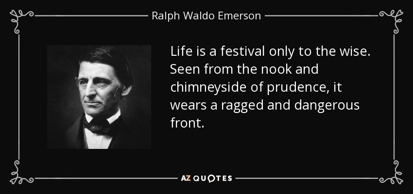 Life is a festival only to the wise. Seen from the nook and chimneyside of prudence, it wears a ragged and dangerous front.