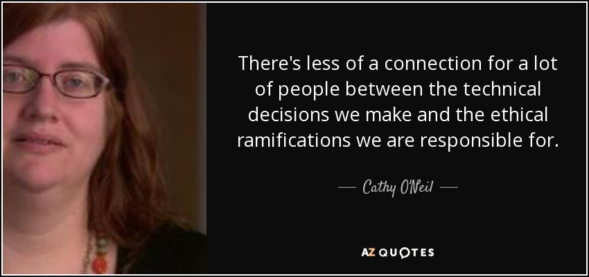 There's less of a connection for a lot of people between the technical decisions we make and the ethical ramifications we are responsible for.