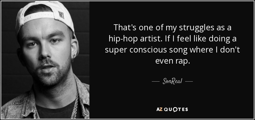 That's one of my struggles as a hip-hop artist. If I feel like doing a super conscious song where I don't even rap.