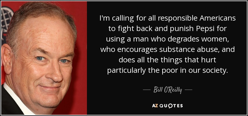 I'm calling for all responsible Americans to fight back and punish Pepsi for using a man who degrades women, who encourages substance abuse, and does all the things that hurt particularly the poor in our society.