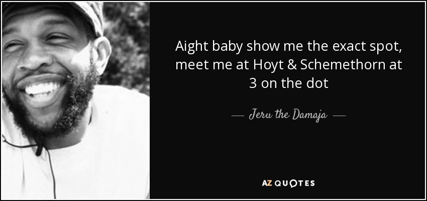 Aight baby show me the exact spot, meet me at Hoyt & Schemethorn at 3 on the dot