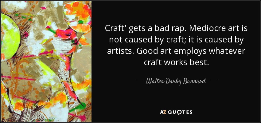 Craft' gets a bad rap. Mediocre art is not caused by craft; it is caused by artists. Good art employs whatever craft works best.