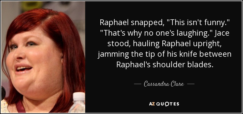 Cassandra Clare (2010). “Cassandra Clare: The Mortal Instrument Series (3 books): City of Bones; City of Ashes; City of Glass”, p.240, Simon and Schuster