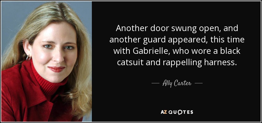 Another door swung open, and another guard appeared, this time with Gabrielle, who wore a black catsuit and rappelling harness.