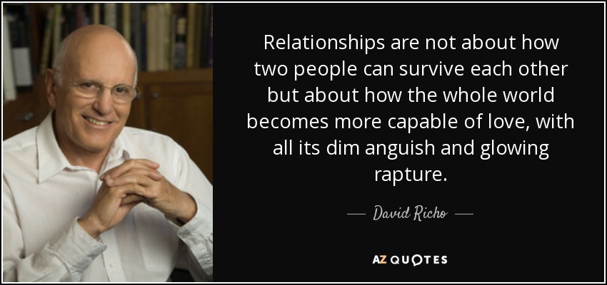 Relationships are not about how two people can survive each other but about how the whole world becomes more capable of love, with all its dim anguish and glowing rapture.