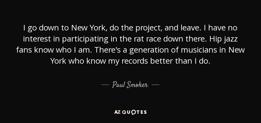 I go down to New York, do the project, and leave. I have no interest in participating in the rat race down there. Hip jazz fans know who I am. There's a generation of musicians in New York who know my records better than I do.