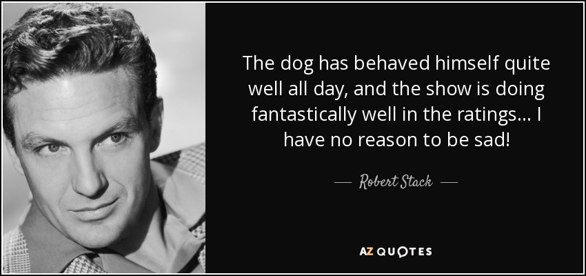 The dog has behaved himself quite well all day, and the show is doing fantastically well in the ratings... I have no reason to be sad!
