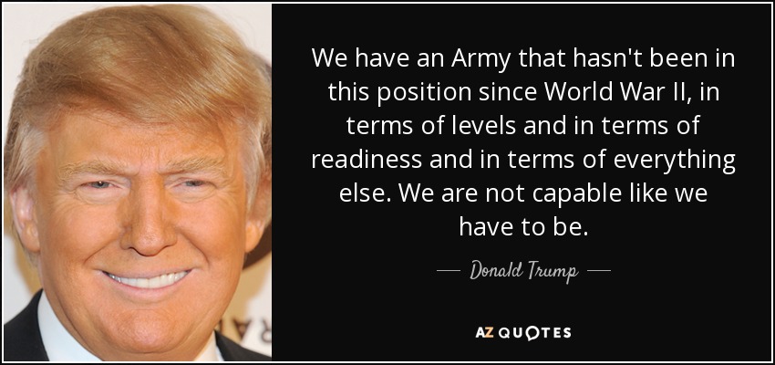 We have an Army that hasn't been in this position since World War II, in terms of levels and in terms of readiness and in terms of everything else. We are not capable like we have to be.
