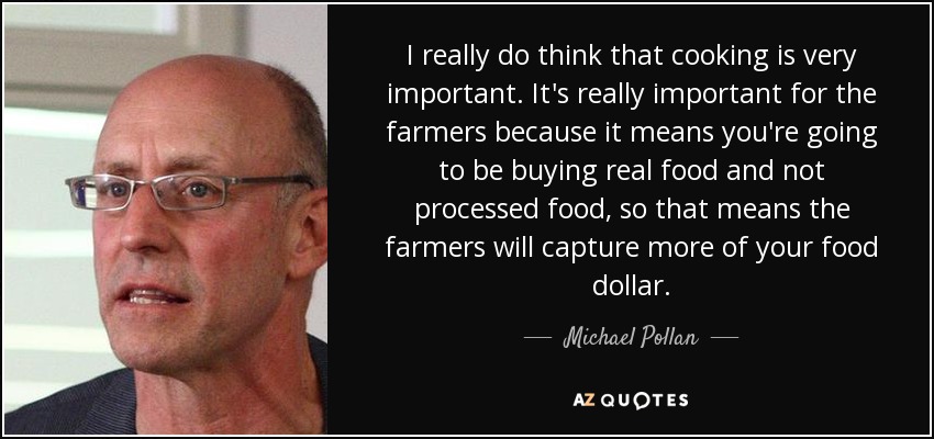 I really do think that cooking is very important. It's really important for the farmers because it means you're going to be buying real food and not processed food, so that means the farmers will capture more of your food dollar.