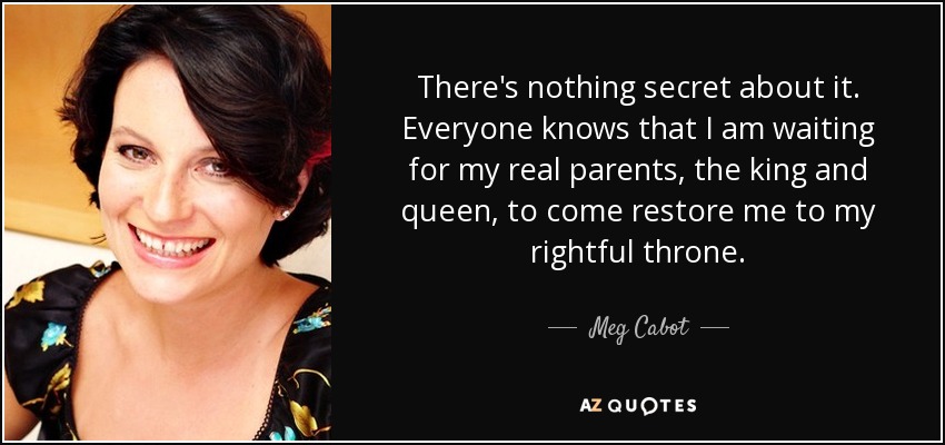There's nothing secret about it. Everyone knows that I am waiting for my real parents, the king and queen, to come restore me to my rightful throne.