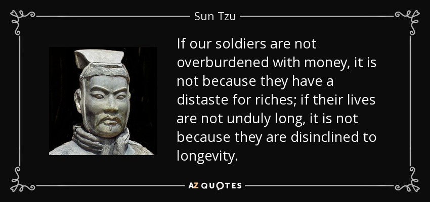 If our soldiers are not overburdened with money, it is not because they have a distaste for riches; if their lives are not unduly long, it is not because they are disinclined to longevity.
