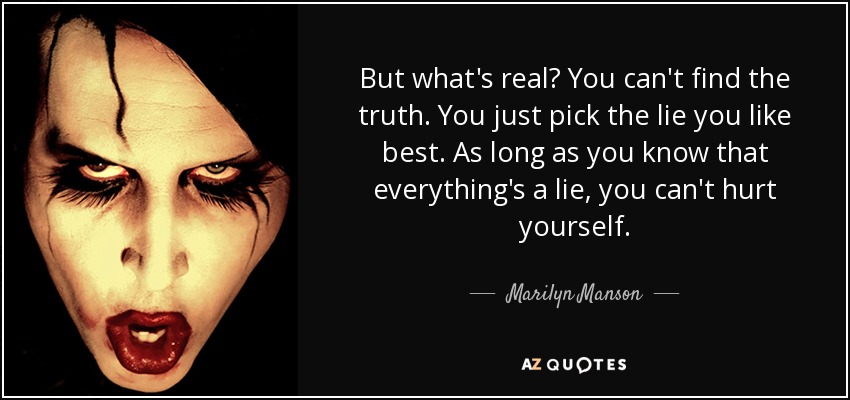 But what's real? You can't find the truth. You just pick the lie you like best. As long as you know that everything's a lie, you can't hurt yourself.