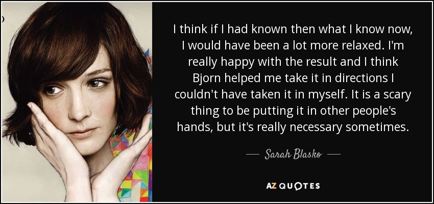 I think if I had known then what I know now, I would have been a lot more relaxed. I'm really happy with the result and I think Bjorn helped me take it in directions I couldn't have taken it in myself. It is a scary thing to be putting it in other people's hands, but it's really necessary sometimes.
