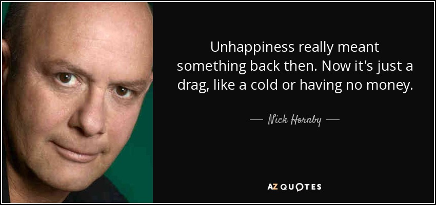 Unhappiness really meant something back then. Now it's just a drag, like a cold or having no money.