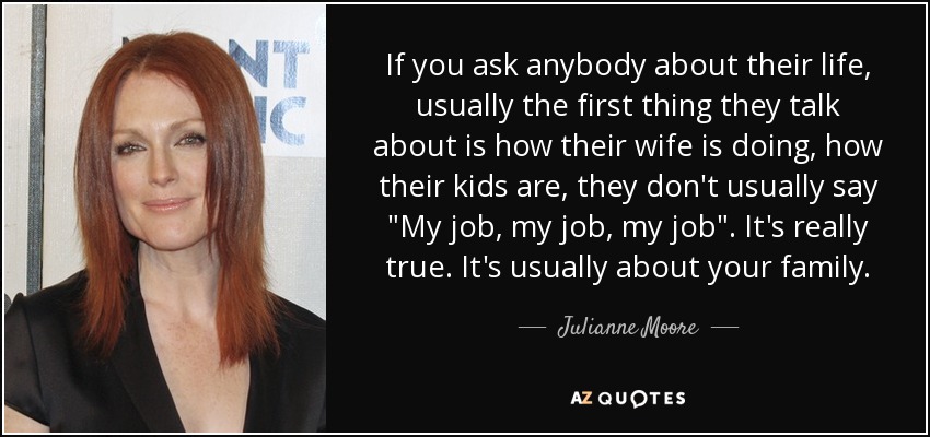 If you ask anybody about their life, usually the first thing they talk about is how their wife is doing, how their kids are, they don't usually say "My job, my job, my job". It's really true. It's usually about your family.