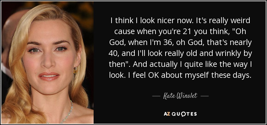 I think I look nicer now. It's really weird cause when you're 21 you think, "Oh God, when I'm 36, oh God, that's nearly 40, and I'll look really old and wrinkly by then". And actually I quite like the way I look. I feel OK about myself these days.