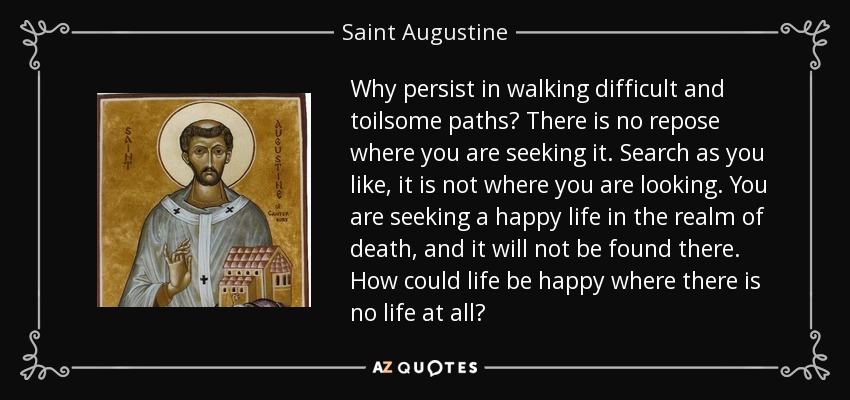 Why persist in walking difficult and toilsome paths? There is no repose where you are seeking it. Search as you like, it is not where you are looking. You are seeking a happy life in the realm of death, and it will not be found there. How could life be happy where there is no life at all?