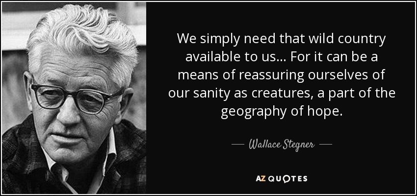We simply need that wild country available to us... For it can be a means of reassuring ourselves of our sanity as creatures, a part of the geography of hope.