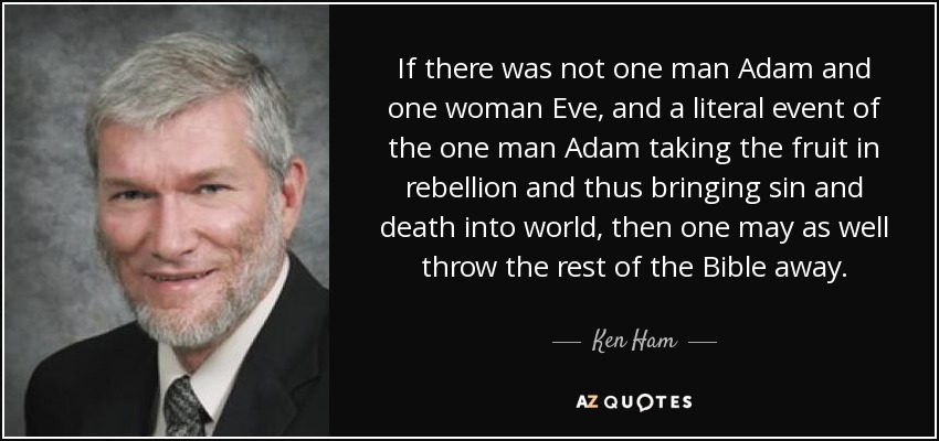 If there was not one man Adam and one woman Eve, and a literal event of the one man Adam taking the fruit in rebellion and thus bringing sin and death into world, then one may as well throw the rest of the Bible away.