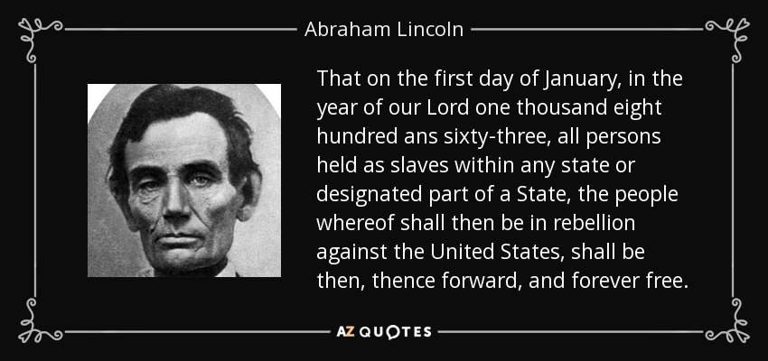 That on the first day of January, in the year of our Lord one thousand eight hundred ans sixty-three, all persons held as slaves within any state or designated part of a State, the people whereof shall then be in rebellion against the United States, shall be then, thence forward, and forever free.