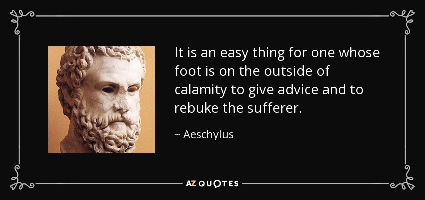 It is an easy thing for one whose foot is on the outside of calamity to give advice and to rebuke the sufferer.