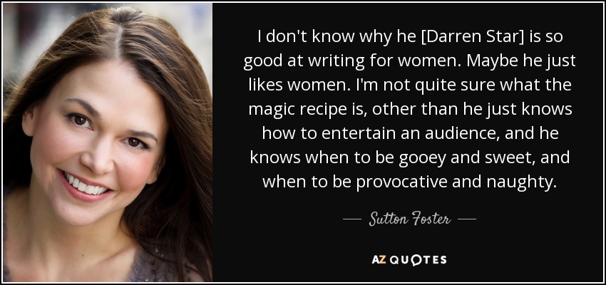 I don't know why he [Darren Star] is so good at writing for women. Maybe he just likes women. I'm not quite sure what the magic recipe is, other than he just knows how to entertain an audience, and he knows when to be gooey and sweet, and when to be provocative and naughty.