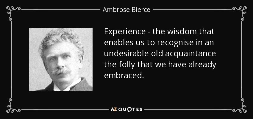 Experience - the wisdom that enables us to recognise in an undesirable old acquaintance the folly that we have already embraced.