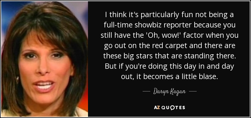 I think it's particularly fun not being a full-time showbiz reporter because you still have the 'Oh, wow!' factor when you go out on the red carpet and there are these big stars that are standing there. But if you're doing this day in and day out, it becomes a little blase.