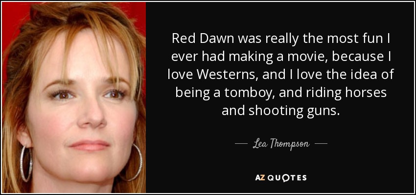 Red Dawn was really the most fun I ever had making a movie, because I love Westerns, and I love the idea of being a tomboy, and riding horses and shooting guns.
