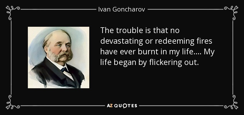The trouble is that no devastating or redeeming fires have ever burnt in my life.... My life began by flickering out.