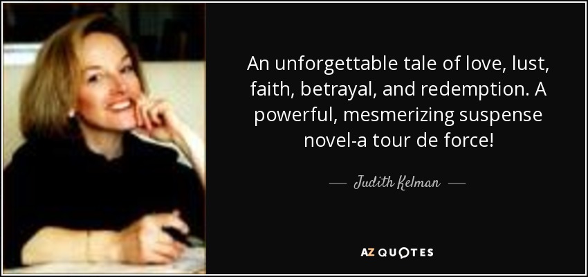 An unforgettable tale of love, lust, faith, betrayal, and redemption. A powerful, mesmerizing suspense novel-a tour de force!