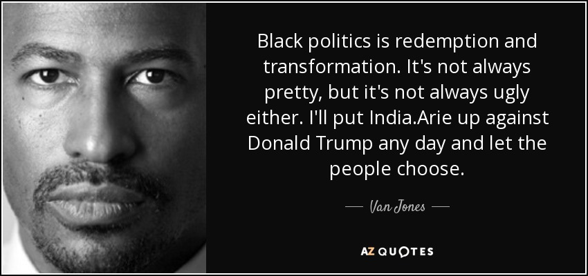 Black politics is redemption and transformation. It's not always pretty, but it's not always ugly either. I'll put India.Arie up against Donald Trump any day and let the people choose.
