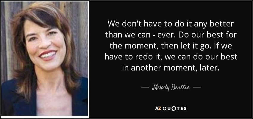 We don't have to do it any better than we can - ever. Do our best for the moment, then let it go. If we have to redo it, we can do our best in another moment, later.