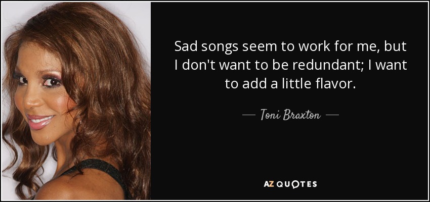 Sad songs seem to work for me, but I don't want to be redundant; I want to add a little flavor.
