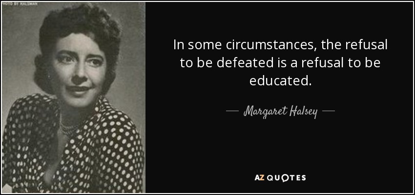 In some circumstances, the refusal to be defeated is a refusal to be educated.