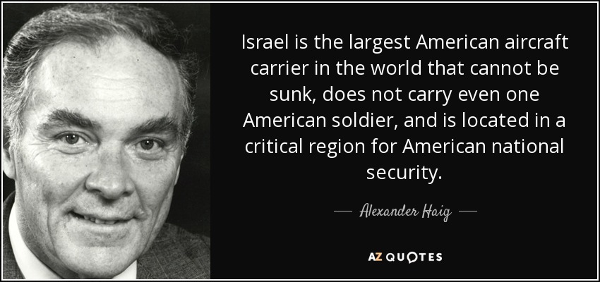 Israel is the largest American aircraft carrier in the world that cannot be sunk, does not carry even one American soldier, and is located in a critical region for American national security.