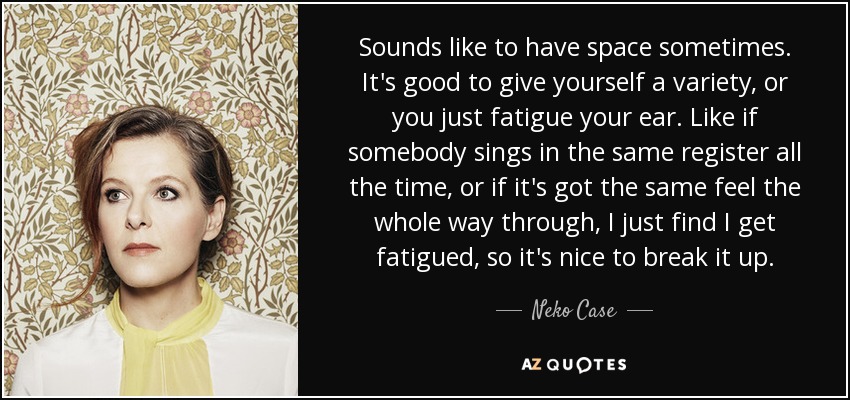 Sounds like to have space sometimes. It's good to give yourself a variety, or you just fatigue your ear. Like if somebody sings in the same register all the time, or if it's got the same feel the whole way through, I just find I get fatigued, so it's nice to break it up.