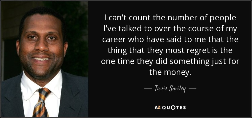 I can't count the number of people I've talked to over the course of my career who have said to me that the thing that they most regret is the one time they did something just for the money.