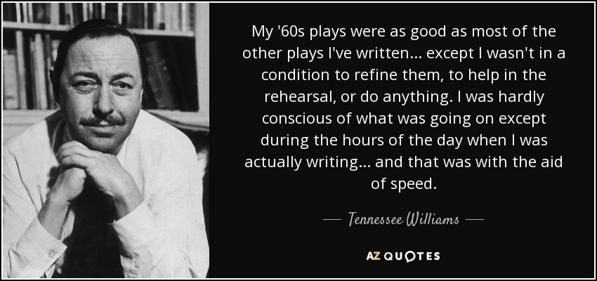 My '60s plays were as good as most of the other plays I've written ... except I wasn't in a condition to refine them, to help in the rehearsal, or do anything. I was hardly conscious of what was going on except during the hours of the day when I was actually writing ... and that was with the aid of speed.