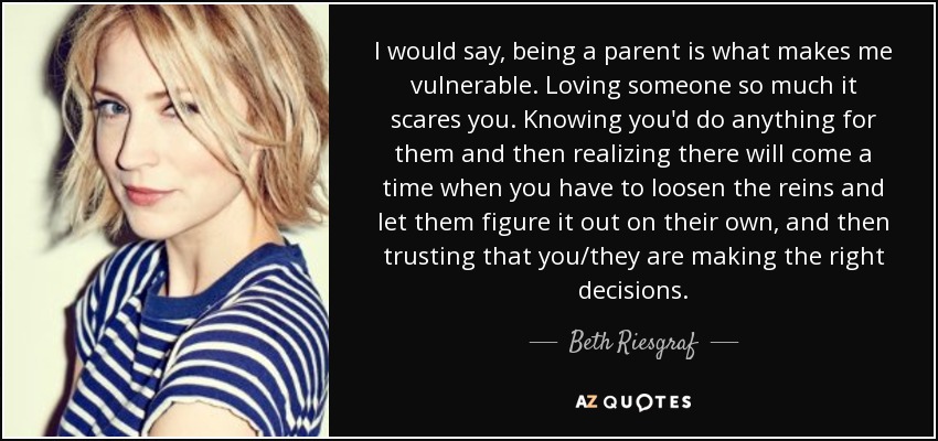 I would say, being a parent is what makes me vulnerable. Loving someone so much it scares you. Knowing you'd do anything for them and then realizing there will come a time when you have to loosen the reins and let them figure it out on their own, and then trusting that you/they are making the right decisions.