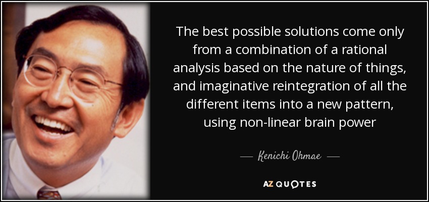 The best possible solutions come only from a combination of a rational analysis based on the nature of things, and imaginative reintegration of all the different items into a new pattern, using non-linear brain power