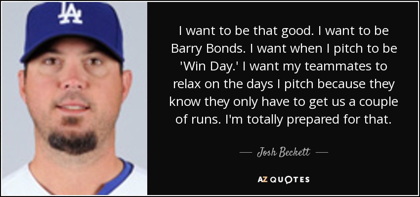 I want to be that good. I want to be Barry Bonds. I want when I pitch to be 'Win Day.' I want my teammates to relax on the days I pitch because they know they only have to get us a couple of runs. I'm totally prepared for that.