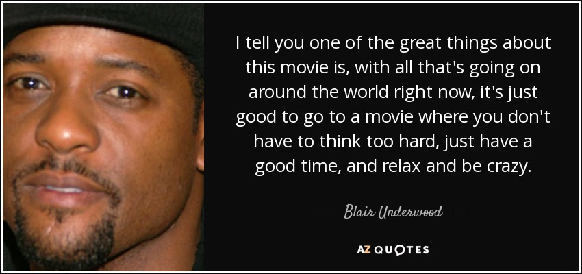 I tell you one of the great things about this movie is, with all that's going on around the world right now, it's just good to go to a movie where you don't have to think too hard, just have a good time, and relax and be crazy.