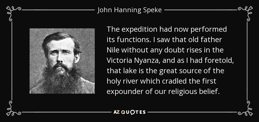 The expedition had now performed its functions. I saw that old father Nile without any doubt rises in the Victoria Nyanza, and as I had foretold, that lake is the great source of the holy river which cradled the first expounder of our religious belief.