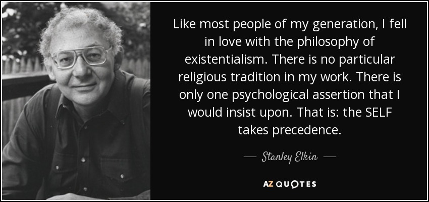 Like most people of my generation, I fell in love with the philosophy of existentialism. There is no particular religious tradition in my work. There is only one psychological assertion that I would insist upon. That is: the SELF takes precedence.